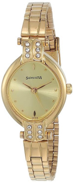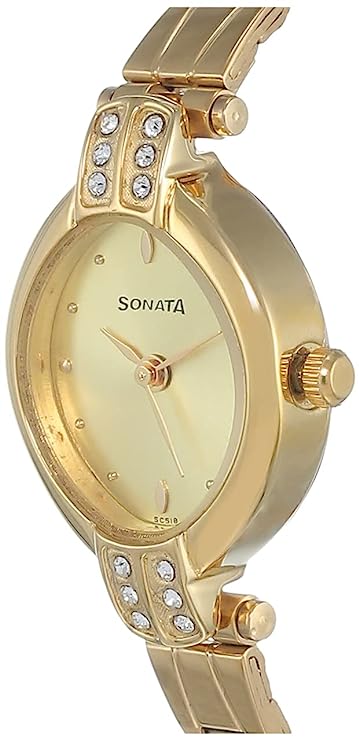 SONATA Champagne Dial Golden Stainless Steel Strap Watch NR8064YM01