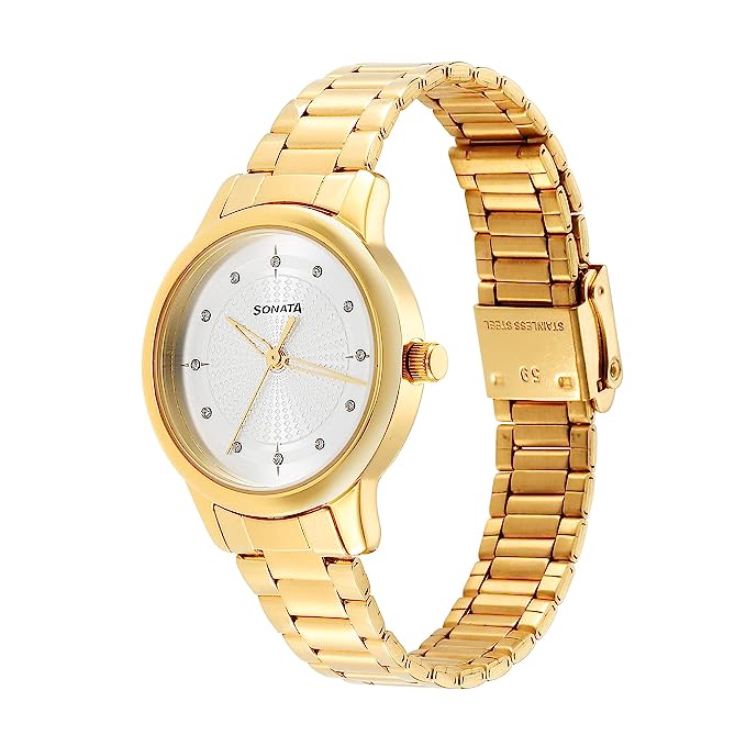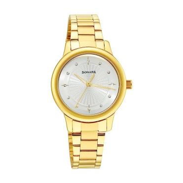 SONATA Classic Gold Silver Dial Metal Strap Watch for Women NR8178YM01