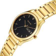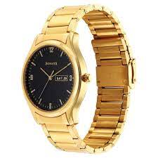 Sonata Essentials Day and Date Black Dial Golden Stainless Steel Strap 77082YM08