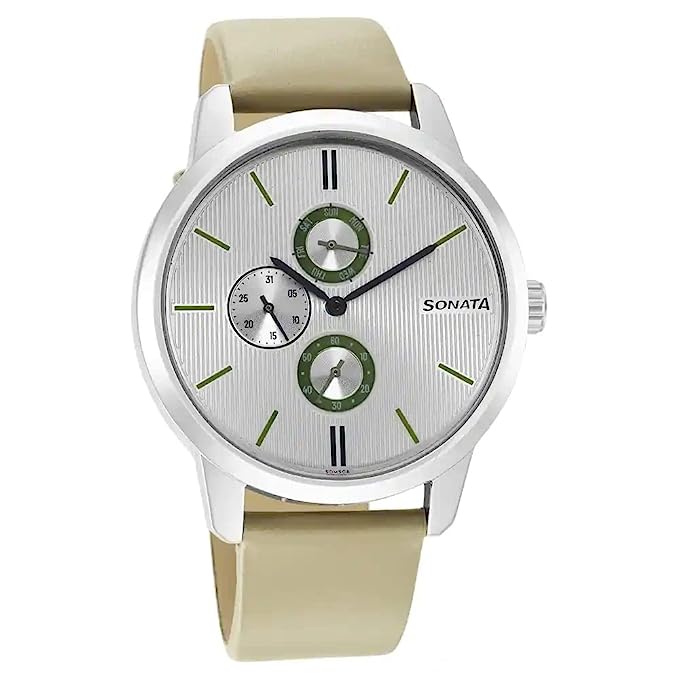 SONATA Versatyle 2 Silver Dial Leather Strap Watch NR7139SL04
