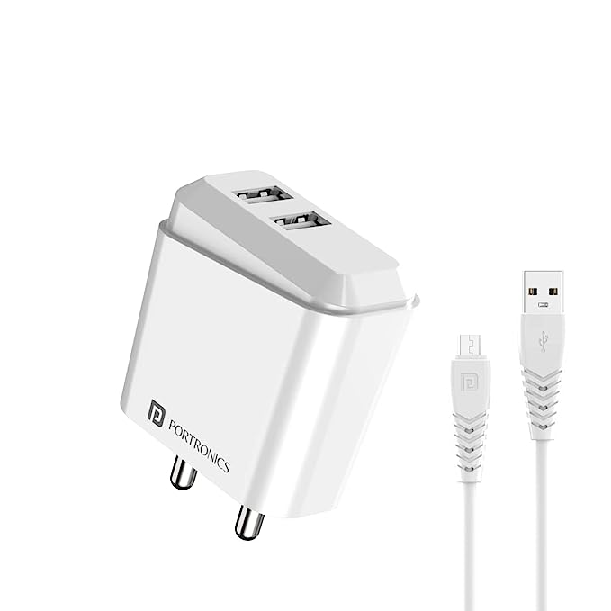 Portronics Adapto 42 M 2.4A Charger with Dual 1M Micro USB Charging Cable(White)