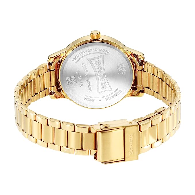 SONATA Classic Gold Silver Dial Metal Strap Watch for Women NR8178YM01