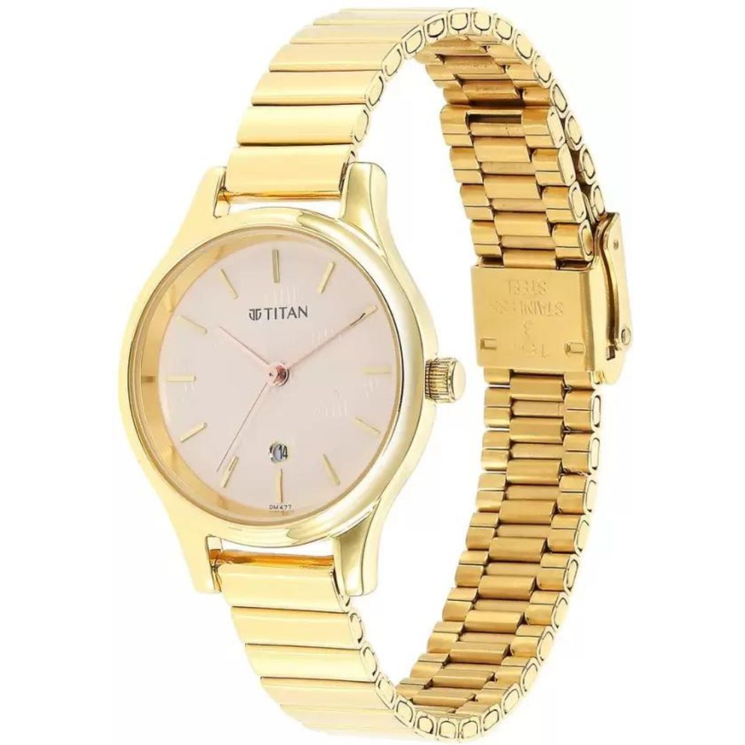 TITAN Ladies Karishma Beige Dial Metal Strap Watch NR2679YM01